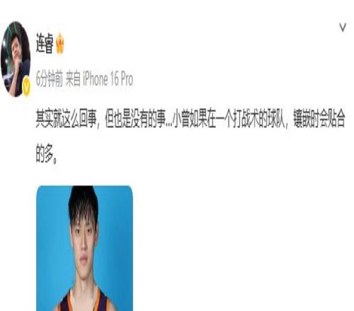 媒体人:曾凡博如果在一个打战术的球队,镶嵌时会贴合的多