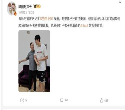 而随着这一场比赛逐渐临近,目前杨瀚森也收到了两个好消息,可以说是双喜临门,这些好消息应该有利于杨瀚森在接下来取得更好的发挥。首先第一个好消息,目前根据权威媒体报道,杨瀚森在青岛男篮的恩师刘维伟已经确定将会出席本次开拓者常规赛的揭幕战,到时候将会在现场观战,为自己的弟子加油打气。这对于杨瀚森而言,其实是一个非常重要的消息。毕竟恩师在底下坐着,杨瀚森可能会打的更加有激情、更加有活力、更加从容,也会想要打出好的成绩来回馈自己的恩师,这也许会在心理层面帮助杨瀚森打好本场比赛。