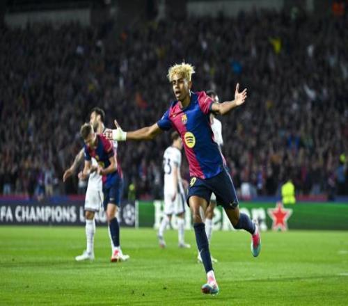 雷速体育10月21报道 北京时间明天凌晨进行的欧冠联赛阶段第3轮比赛中,巴塞罗那将主场对阵奥林匹亚科斯,本场比赛巴萨球星亚马尔有望创下新纪录。