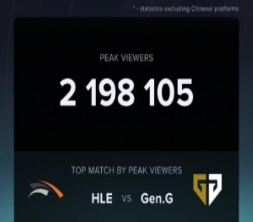 国外数据网站统计GENvsHLE收视率:观赛人数达219万 大精灵 2025-10-28 21:04:13 电竞体育10月28报道 据国外数据网站Esports Charts统计,GENvsHLE比赛的观赛人数达219万人(不包含国内平台) 上一篇: Ning被要求摄像头只能放右气的狂喷:世界赛完我把你M问候没了!下一篇: 蝴蝶飞不过沧海没谁忍心责怪Peanut连续三年S赛八强,结束最后一舞