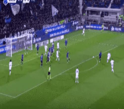 这个进球很好的反映出了米兰后防的问题,在整个禁区中总共有7名防守人、和1名门将在对亚特兰大进行盯防。可是帕萨利奇在禁区弧顶的一个轻巧直塞就打透了米兰整体上的防守,不管是边后卫还是中后卫都没能够拦住卢克曼,而他起脚爆射空间非常的充足,力量发的也是很大,这就让迈尼昂没有一点点办法的。