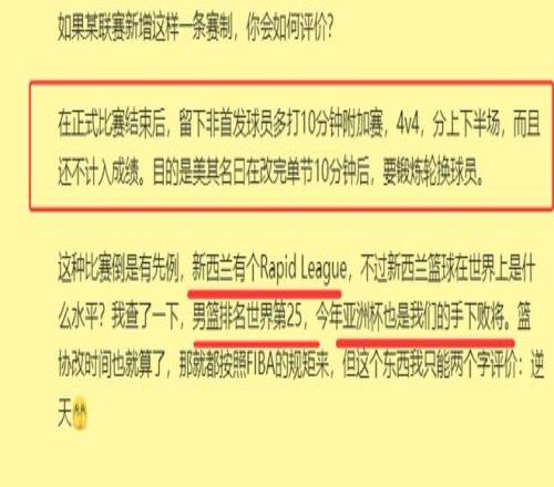 双管齐下!曝CBA除了压缩比赛时长,还要额外再增加一节比赛,效仿新西兰联赛的原因曝光,但是中国男篮亚洲杯半决赛不是大胜对手14分吗?