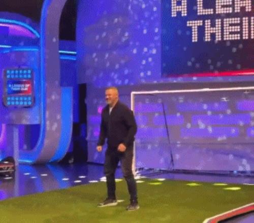 40岁的鲁尼,5年之前就宣布退役,身材严重发福,早已不是当年那个鲁小胖。不过,在一档名为《戏剧对抗赛(A League of Their Own)》的电视直播节目中,鲁尼现场表演经典进球: