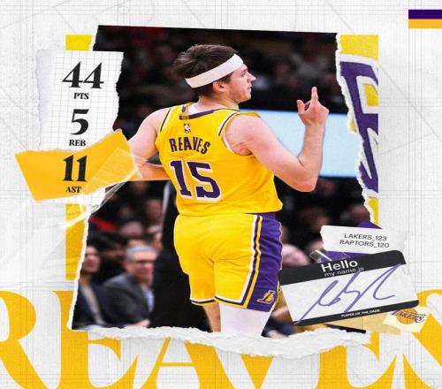 詹姆斯创NBA第1神迹,湖人绝杀猛龙!里夫斯44+11暴走创两大纪录